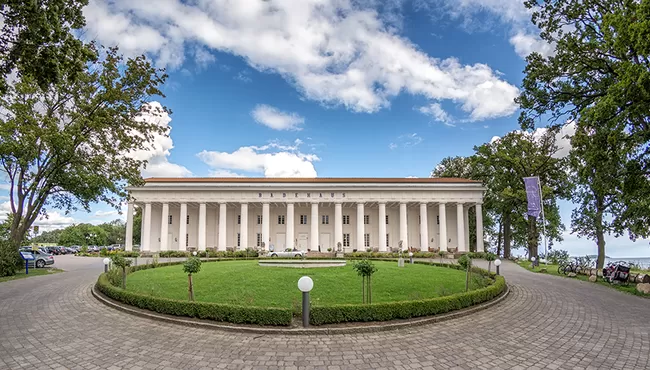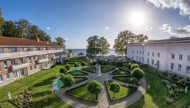 We verblijven in het schitterende 4-sterren hotel Badehaus Goor in Lauterbach. De voorzijde van het gebouw bestaat uit een prachtige en statige zuilengalerij dat Prins Wilhelm Malte van Putbus in 1818 liet bouwen voor zichzelf en de adel, het diende als badhuis. Achter de zuilengalerij vinden we een prachtig 4-sterren hotel. Het hotel ligt aan de baai. U kunt een heerlijke wandeling maken naar de haven of langs de beboste kustlijn. Het hotel is voorzien van een lift, een binnenzwembad, een spa, bar met een lounge en een heerlijk terras dat uitkijkt op de baai. De ruime kamers zijn van alle gemakken voorzien, zoals u kunt verwachten van een 4-sterren hotel. In het restaurant krijgen we een uitgebreid ontbijt en in de avond een heerlijk drie-gangen-diner. Beoordeling Booking.com: 8.5.